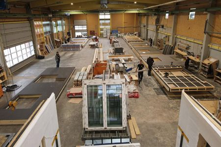 Für die beiden Gebäude mit insgesamt zwölf Wohnungen wurde zunächst ein millimetergenauer digitaler Zwilling per Laserscan erstellt. Auf dieser Basis fertigte Schmidt Hausbau hochgedämmte Wandelemente mit integrierten Fenstern, Rollläden und vorbereiteten Anschlussstellen für neue Balkone. Die Montage der tonnenschweren Elemente erfolgte anschließend passgenau vor Ort – deutlich schneller und leiser als bei einer herkömmlichen Sanierung.